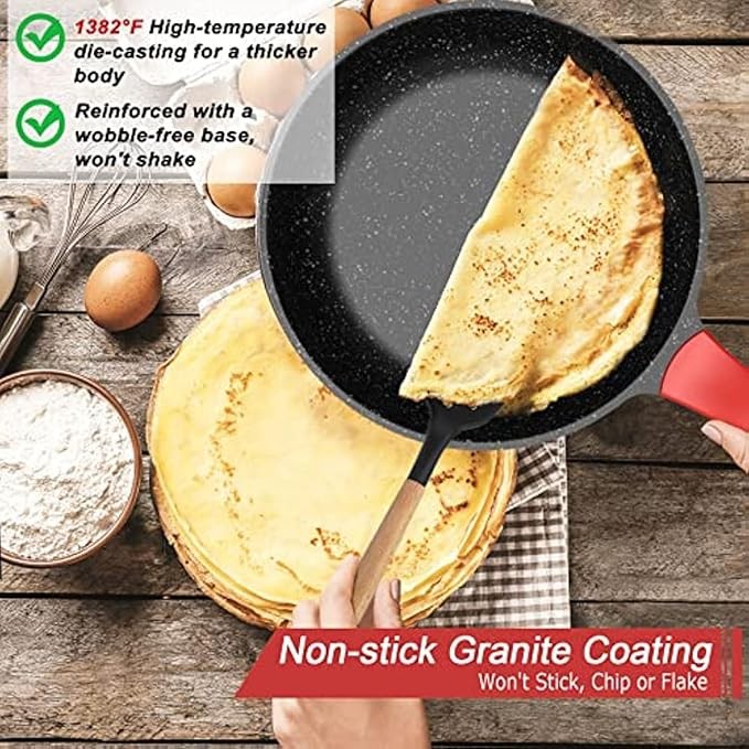 【Nonstick Coating Without Warping & Flaking Scratch-proof non-stick granite coating keeps food sliding smoothly along the surface, food to stick, and making cooking easier.