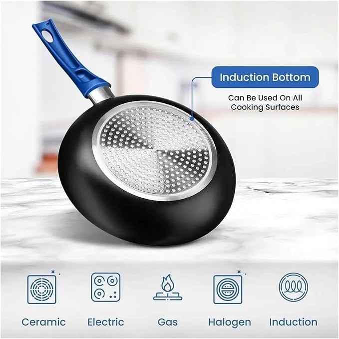 Scratch Resistant And Easy To Hold, our non stick kitchen pots and pans set has non-slip easy-grip handles.
