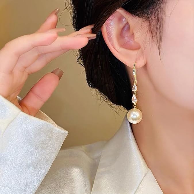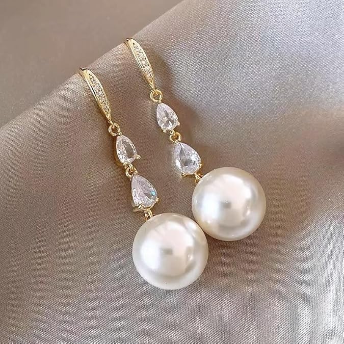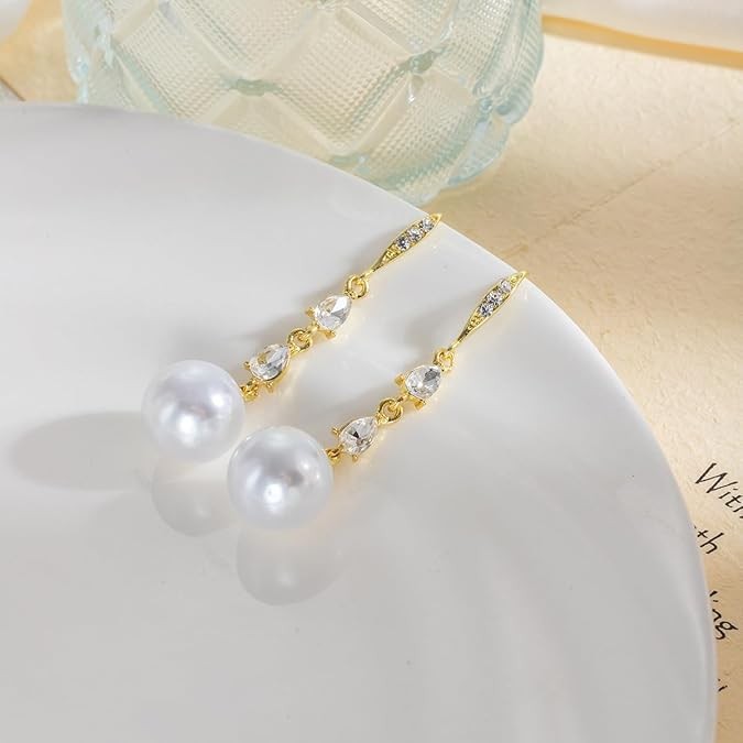 Bông tai pha lê ngọc trai giả Bông tai thả ngọc trai mạ vàng 14K dành cho nữ Bông tai lủng lẳng ngọc trai khối Zirconia thanh lịch cho cô dâu Bông tai cô dâu trong đám cưới cho quà tặng trang sức phù dâu