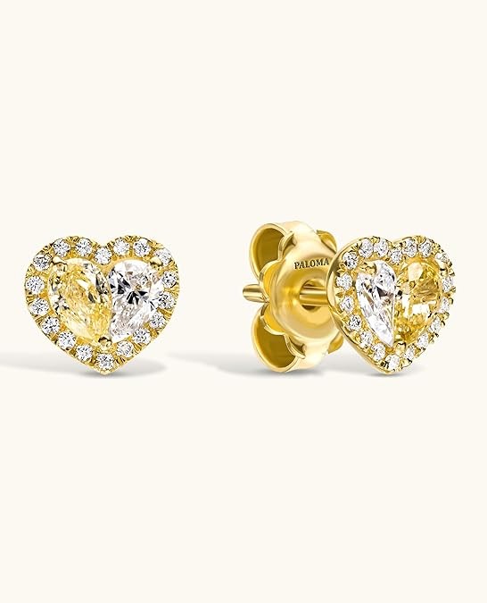 Bông tai trái tim màu vàng/trắng/vàng hồng 18K đính kim cương tự nhiên 0,96 TCW (Hình trái tim, nhiều màu, độ trong của VS-SI2) Bông tai xinh xắn, Bông tai cho nữ, Quà tặng cho cô ấy, Trang sức cao cấp cho nữ