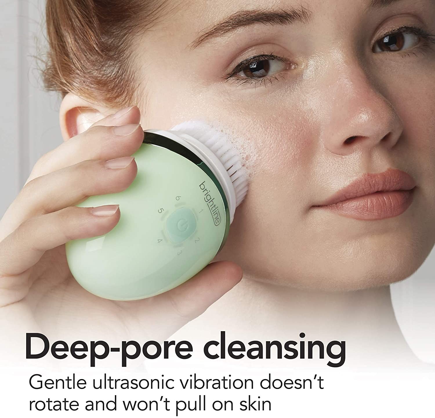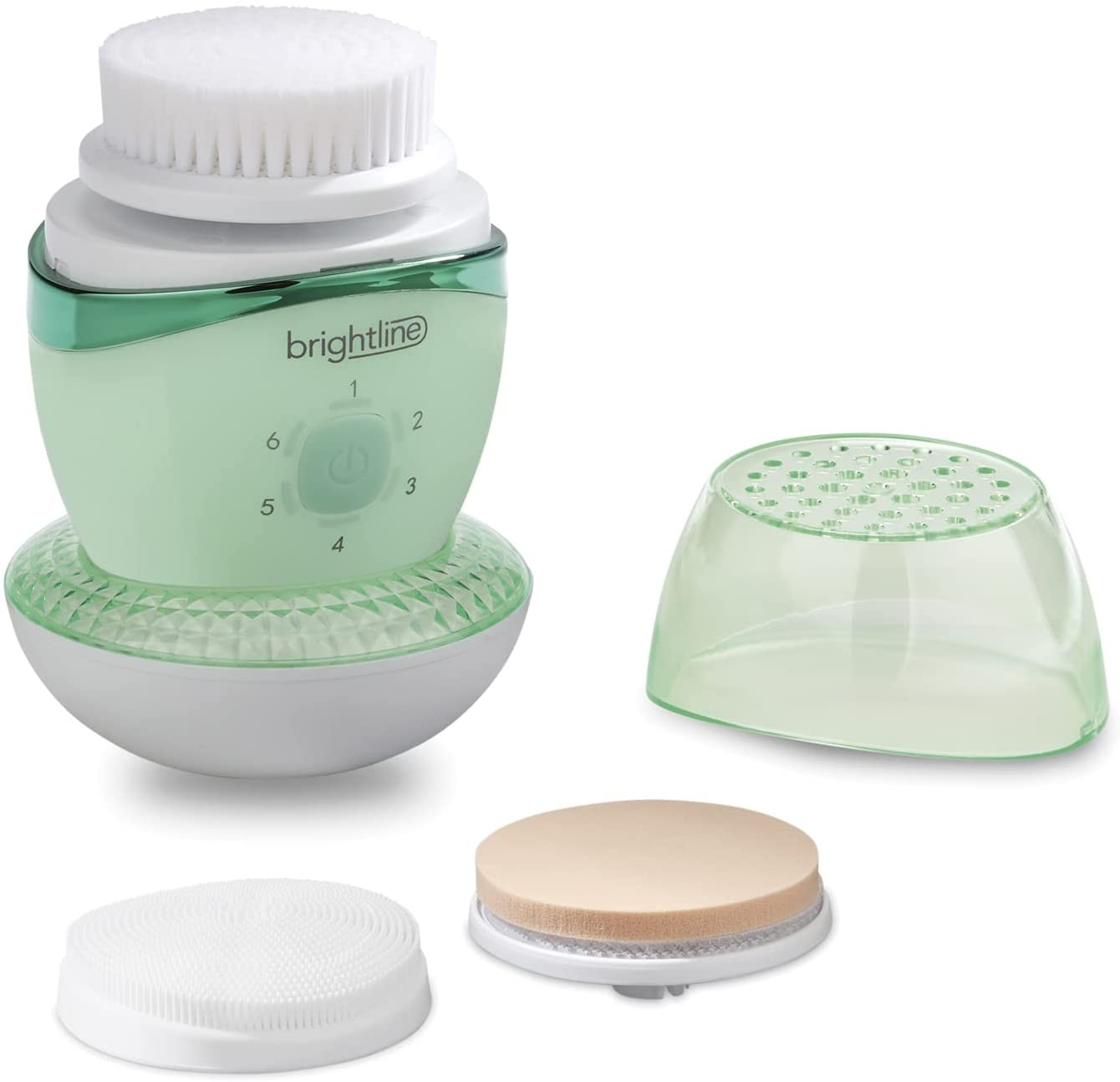 Tên sản phẩm Hệ thống bàn chải làm sạch mặt bằng điện có thể sạc lại Brightline Sonic, Máy tẩy tế bào chết cho mặt, 6 chế độ cường độ, 3 đầu bàn chải chà, 86780
