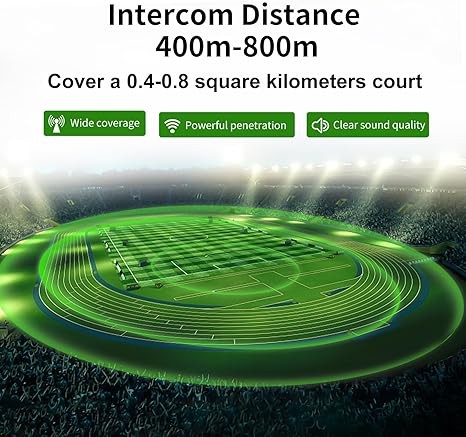 [6-Person Mesh Group & 400M-Diameter Distance] EJEAS F6 Referee Communication system applies the most advanced MESH technology, in effective range, F6 intercom for referee will set up mesh groups freely, and can also reconnect automatically once out of the effective range. The intercom distance is 400m-800m between 2 devices, and maximum distance reaches 2km, covers a 0.4-0.8 square kilometers court.