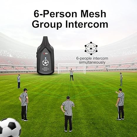 Hệ thống liên lạc tai nghe Bluetooth Intercom trọng tài bóng đá chuyên nghiệp EJEAS F6, Trò chuyện nhóm dạng lưới 6 người, Tắt tiếng micrô, Mã hóa thông tin 6 gói