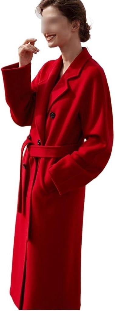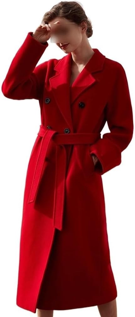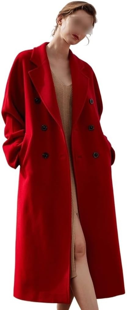 Áo khoác cashmere hai mặt cao cấp màu đỏ dành cho nữ dáng dài, áo khoác len rộng rãi, dáng thu đông