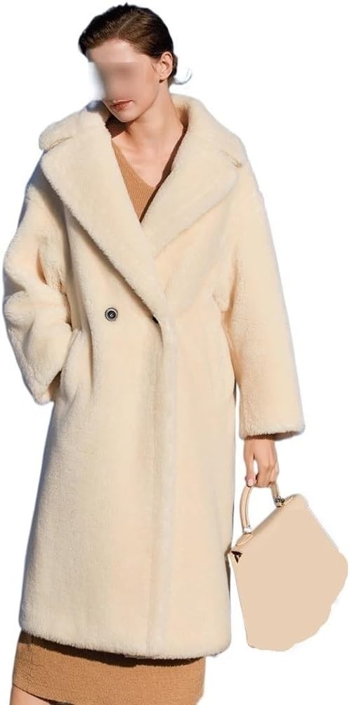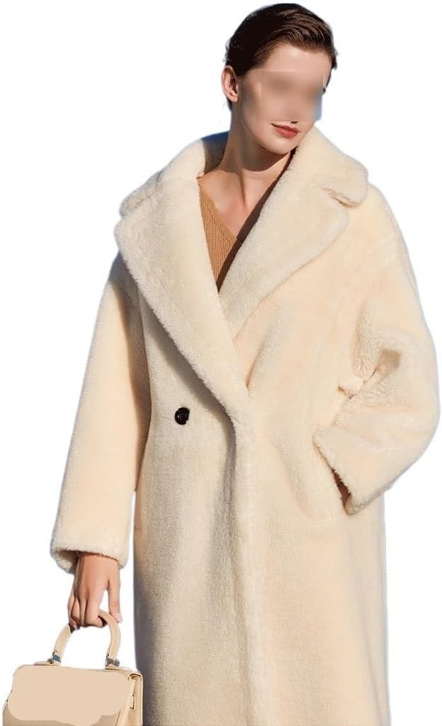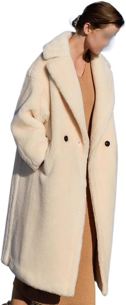 Áo khoác cashmere hai mặt cao cấp màu trắng dành cho nữ, áo khoác len dáng dài, vải tuýt, thu đông (mã XL)
