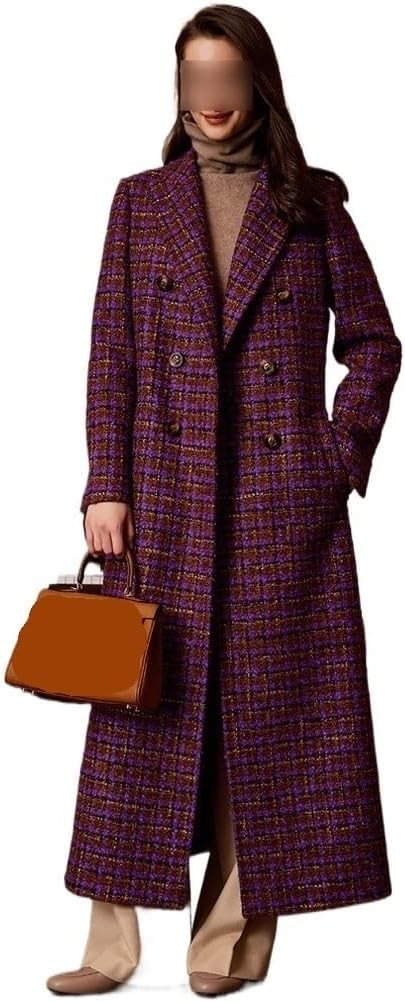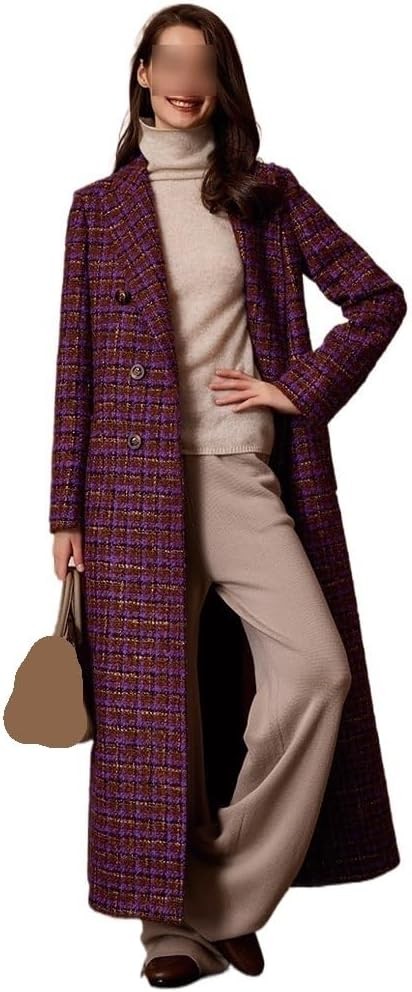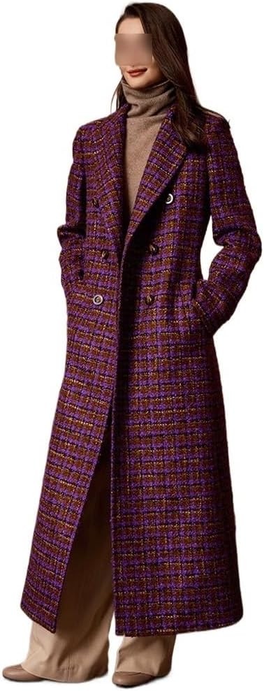 Áo khoác len kẻ ô vuông Tweed dành cho nữ, áo khoác siêu dài, nhỏ, mùa đông (Mã L)