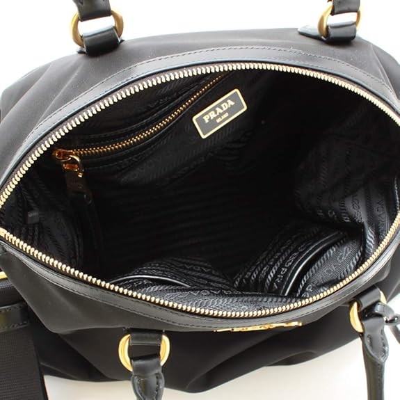 Chiếc túi xách Prada này được chế tác bằng hỗn hợp nylon và da màu đen. Nylon mịn khi chạm vào và giúp chiếc túi dễ chăm sóc. Cùng với đó, bên trong có hai túi giúp bạn sắp xếp đồ đạc ngăn nắp.