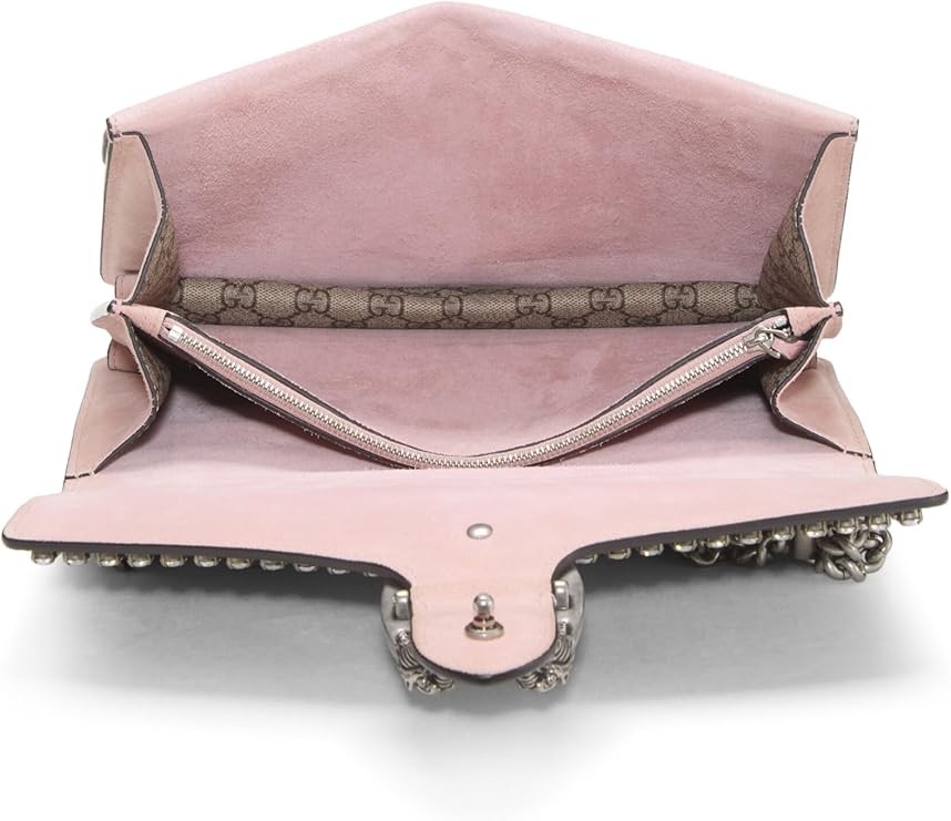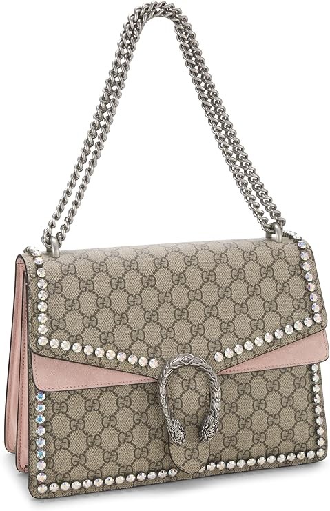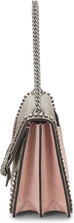 Túi đeo vai Dionysus được tôn tạo bằng pha lê GG Supreme chính hãng được yêu thích trước, cỡ trung bình, màu hồng