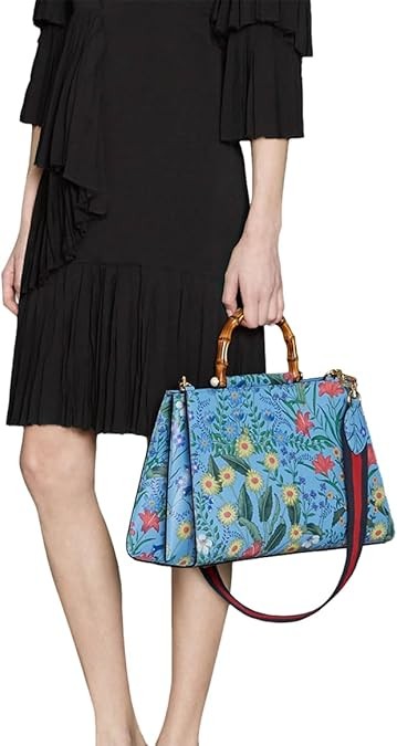 Túi xách Gucci Flora Azure Thượng Hải Màu xanh dương Túi xách hoa lớn Ý Túi xách Túi xách hoa tre Mới