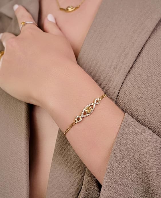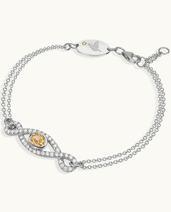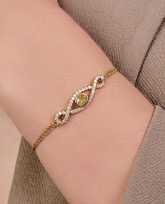 Elevate your style with this 18k solid gold Natural, conflict free orange, white diamonds Center: 1 natural diamonds, tcw: 0.56 carats Pave: 40 natural diamonds, tcw: 0.40 carats Chain Length: 16-18cm, adjustable Chain Width: 1.3mm Closure: Lobster Claw Evil Eye: 30mm This bracelet is not just a piece of jewelry; it's a promise of sophistication and luxury.